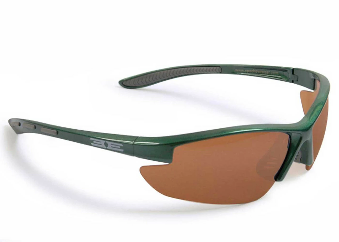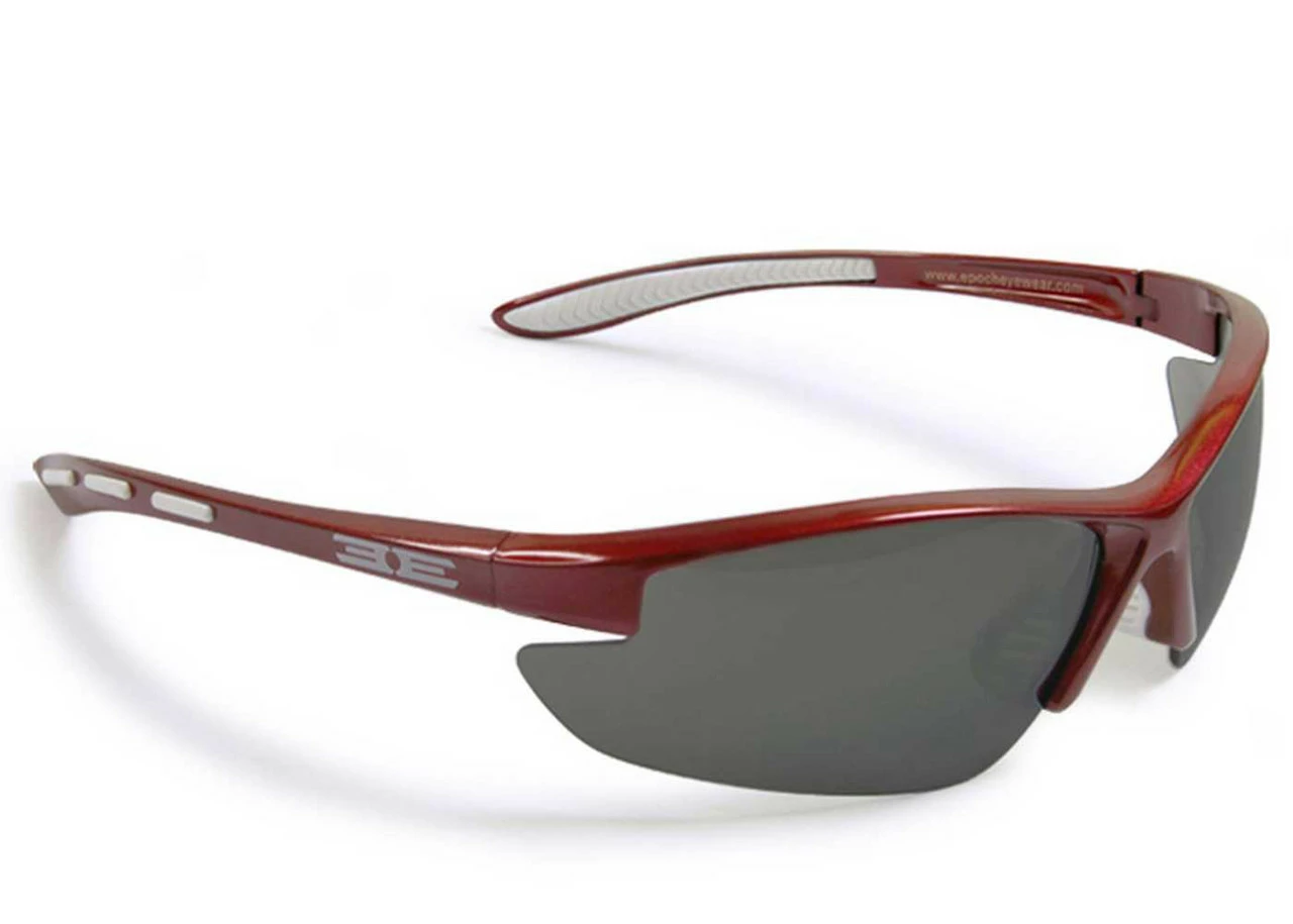 Epoch Eyewear Epoch 5 Sm-Med Faces Sunglasses, Frame and Lens Choices. Epoch5. The Epoch 5 features a classic lightweight sport frame designed to fit small to medium faces. In a variety of colors it features a variety of rubber accents on the ear and nose piece to ensure a perfect fit. 100% UVA & UVB protective lenses. Lenses are shatterproof 100% UVA/UVB protective polycarbonate. Rubber nose pieces prevent slipping. 2 Lens Choices: Smoke Lenses are great in bright conditions or for eyes sensitive to the sun. Amber driving lenses are great in low light conditions, they increase clarity and relax the eyes. 100% UVA/UVB protection. Lenses exceed ANSI rating. Light weight frames. Epoch5