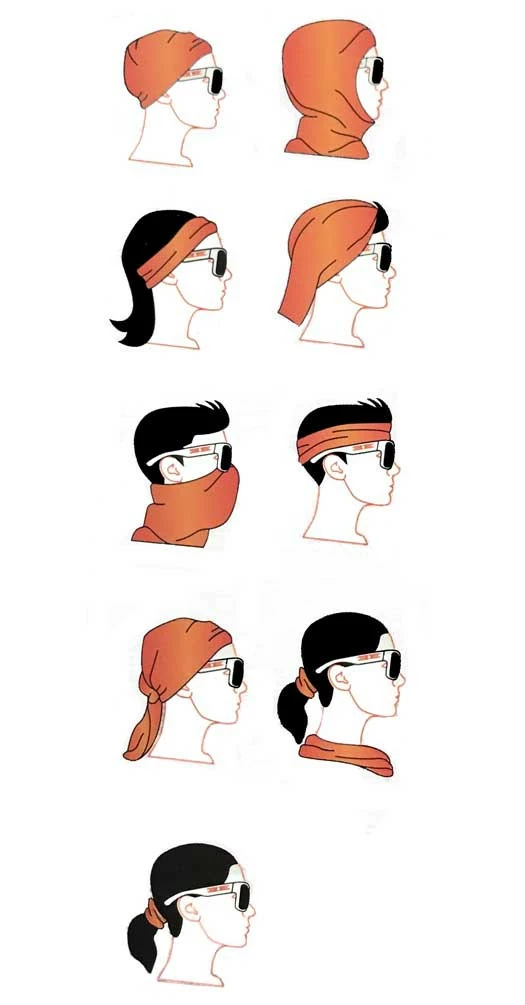 - Headband, neck gaiter, buff, pony-tail holder, sun protection
