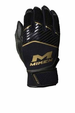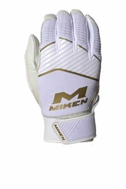 The Miken Adult gold gloves feature a treated goat skin palm for maximum grip and softness. They also offer a palm pad for added protection and a 50mm neoprene cuff for extra support and comfort. The unique gold accents provide to the perfect touch of style the elite players looking to dominate every night. Buy yours today!