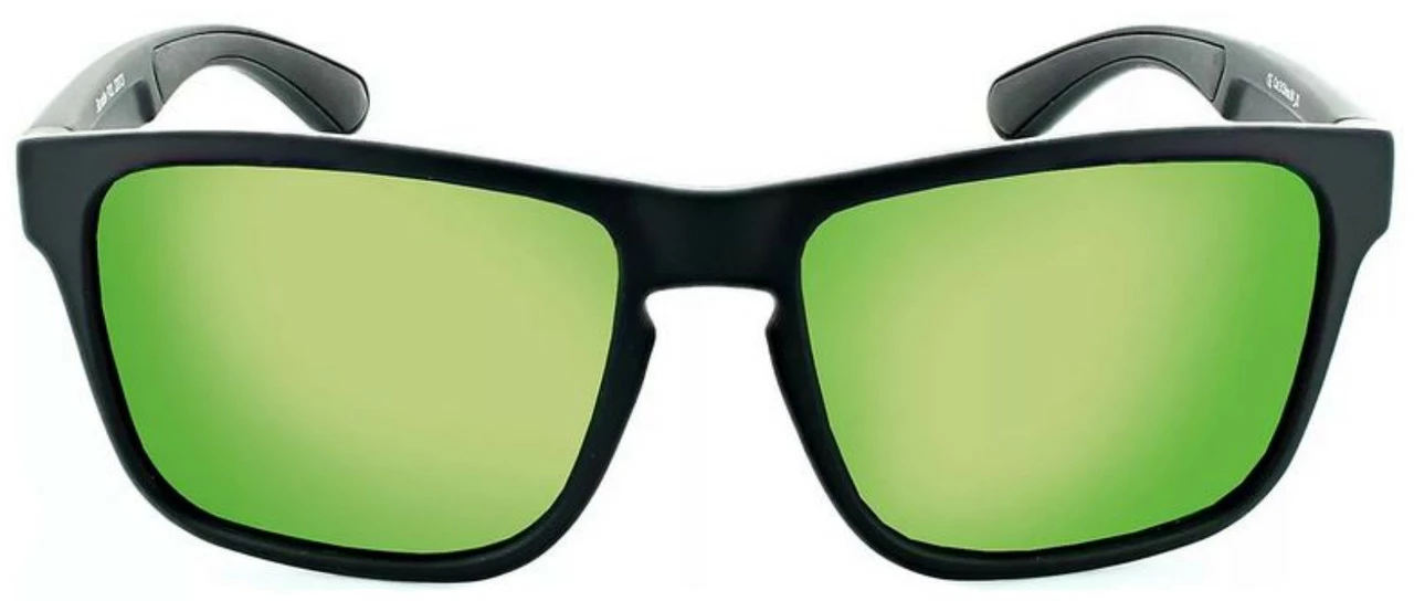 ONE By Optic Nerve Rumble Polarized Sunglasses – Matte Black Frame/Green Mirror Lens W/Case, 22073. The stylish soul of the Rumble is rooted in pure performance. Traction control anti-slip rubber temples and nose bridge to keep them locked on when the going gets rough and deep mirror polarized lenses cut the glare and increase contrast. Better visibility and protection on the water or off in The Rumble. Includes hard and soft protective cases.