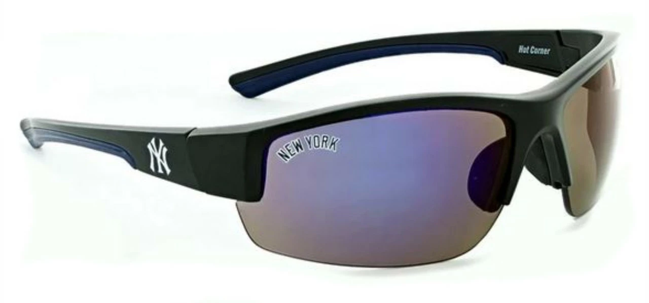 Optic Nerve New York Yankees Hot Corner Sunglasses – Black and Navy Blue Frame & Blue Mirrored Lenses, 05360. Is it hot in here or is it just you in these great sunglasses? Check out this stylish yet durable pair of sunglasses that will have everyone’s head-turning! The popular sports wrap fit and team customization makes these the ultimate baseball shades of the season. Featuring high impact polycarbonate lenses with 100% UV protection. These sunglasses also meet ANSI z80.3 standards for impact resistance. Officially licensed by MLB.