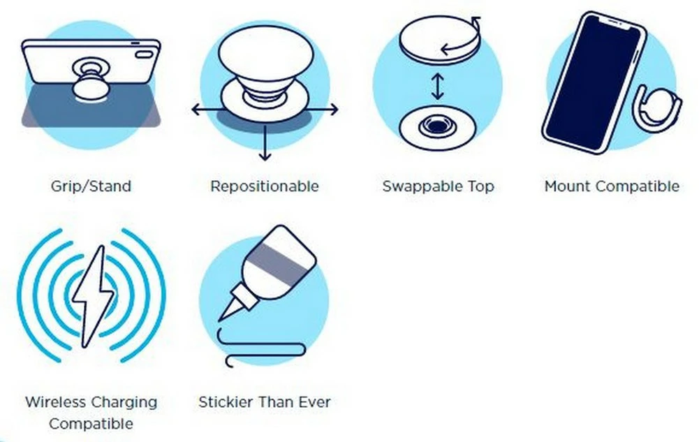 - Repositionable and sticks to most devices and cases (but may not stick to silicone or waterproof cases)