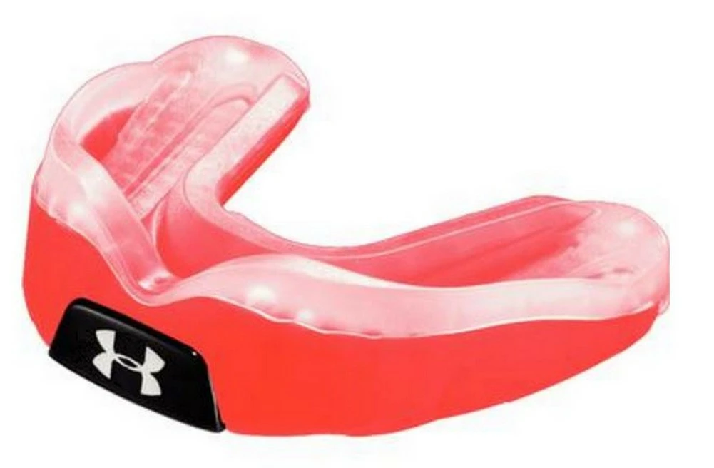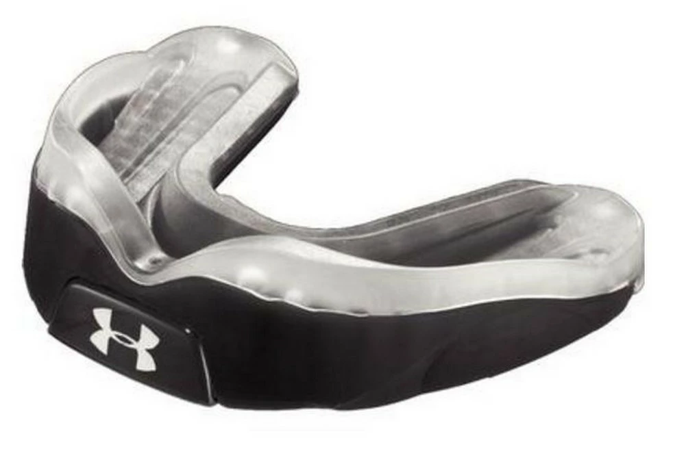 Under Armour ArmourShield Flavored Mouthguard Multi-Sport Adult/Youth R-1-1100. You child can play safe with the Under Armour? Youth ArmourShield Mouth Guard. Armourshield technology uses patented Bite Flex and ArmourPlate technologies to provide higher impact protection to the teeth, jaws and gums. Flavors: White-Spearmint, Red-Fruit Punch, Black-Bubble Gum, Blue-Berry. Under Armour Armourshield Mouthguard delivers protection, fit and retention you need for contact sports. The ArmourPlate insert delivers improved protection while Bite Flex absorbs energy on impact. The contoured EVA material ensures an optimal fit and comfort. The patented polymer shrinks for a secure, locked in fit so the mouth guard stays snugly in place for easier breathing and clearer on field communication. The Under Armour ArmourShield Mouth Guard can be used with or without a strap. Meets NFHS regulations. Made in the USA. Colors: Several color choices. R-1-1100