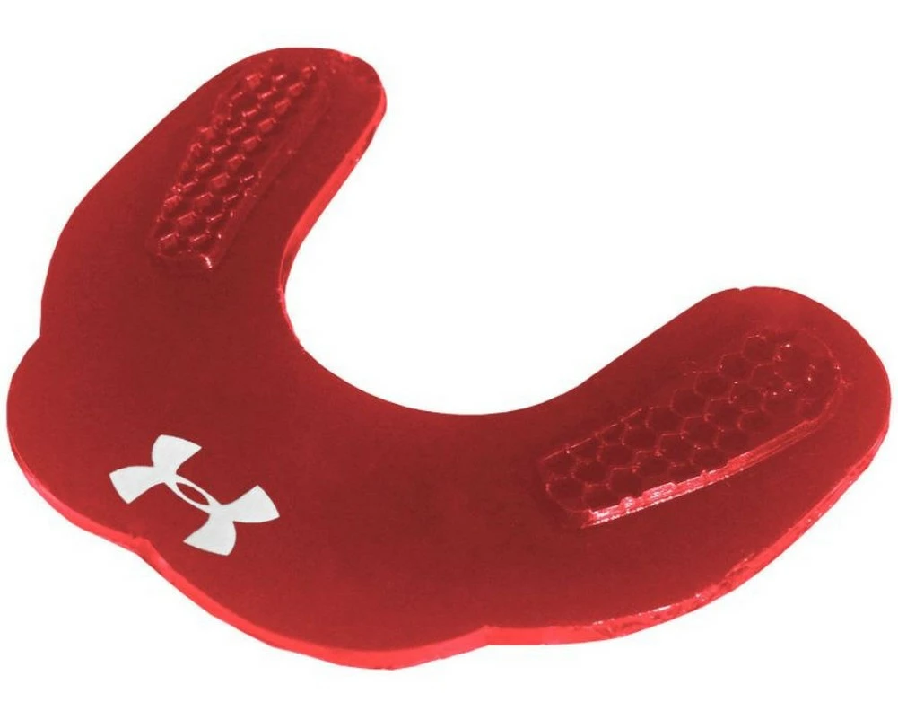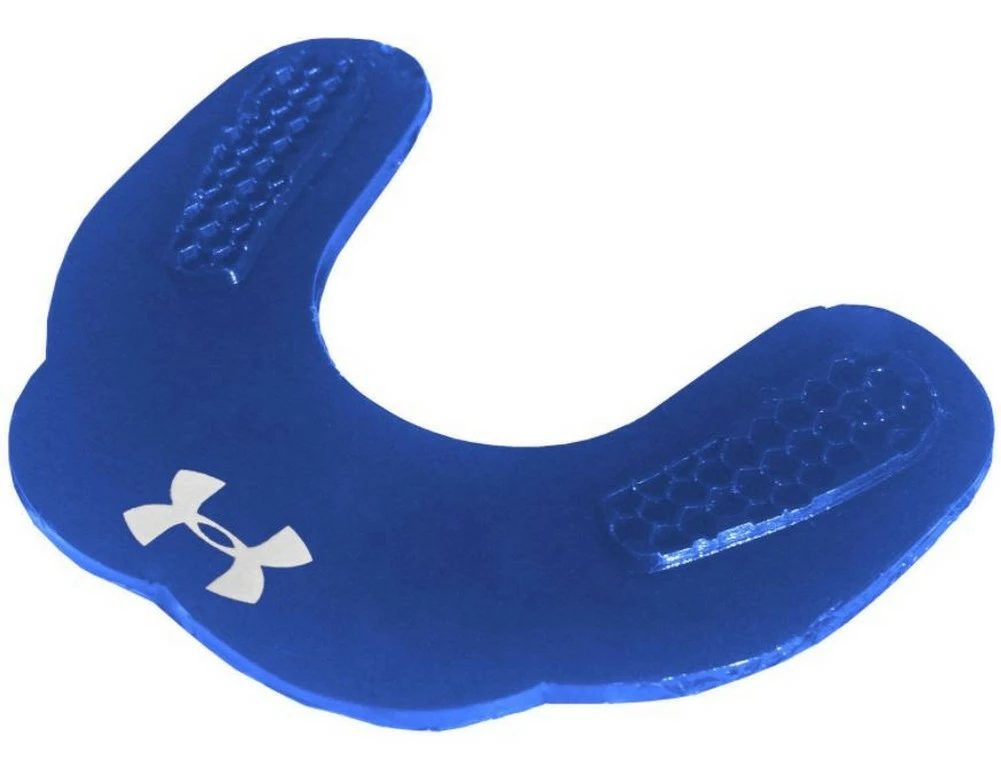 Under Armour Powerfit Slim Design Mouthguard Multi-Sport Colors Adult R-1-1700. The UA PowerFit mouthguard features a super slim 2.5 mm design with no-slip molar pads for secure fit. The easy microwaveable design creates a custom-like fit which is extremely comfortable to wear and is also remoldable. Highly chew resistant and easy to breathe and speak. Protects teeth, jaws and gums and is compatible with braces. One size fits most adults (age 11+). Made in the USA. Color: Black, Blue, Red or White. R-1-1700