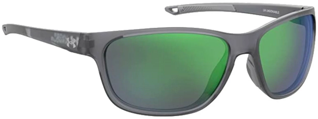 Under Armour Unisex Undeniable Oval Sunglasses � Matte Gray Frame/Green Lens, UA UNDENIABLE-063M. Built to handle every sport or workout you throw at them, with a lightweight, aerodynamic wrap-around mirrored design for maximum coverage. The mirror coating offers improved sun protection, durability & scratch resistance while the sporty, lightweight wrap design offers maximum coverage. The TR90 frames are durable, flexible, hypoallergenic & impact-resistant while the auto-lock stop hinge allows the temples to lock securely in place for a sturdy fit. A water & smudge-resistant coating makes the lenses easier to clean with clearer optics and the temple tip holes make easy paring with most lanyard.